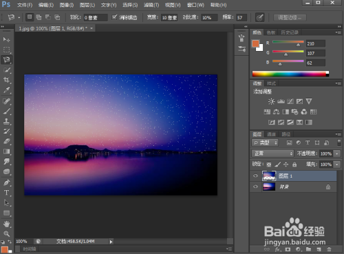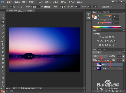 按ctrl+c,再按ctrl+v,将天空部门的图形复制到一个新图层中;