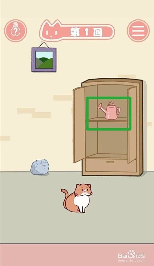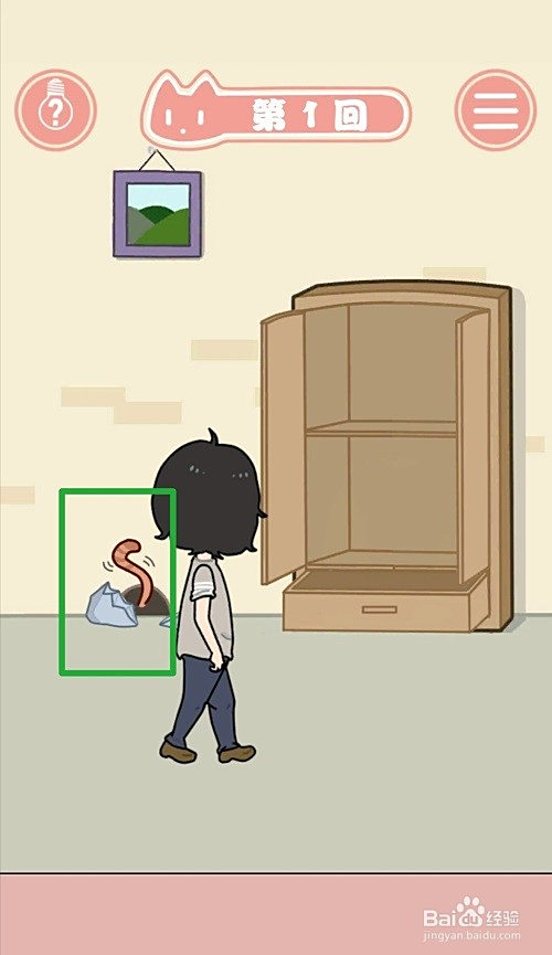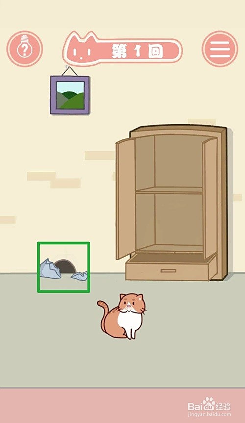 点击墙洞,猫猫就可以藏进去了,游戏过关。