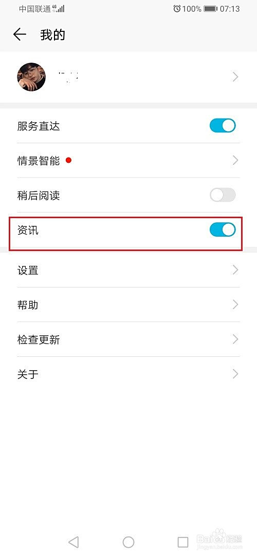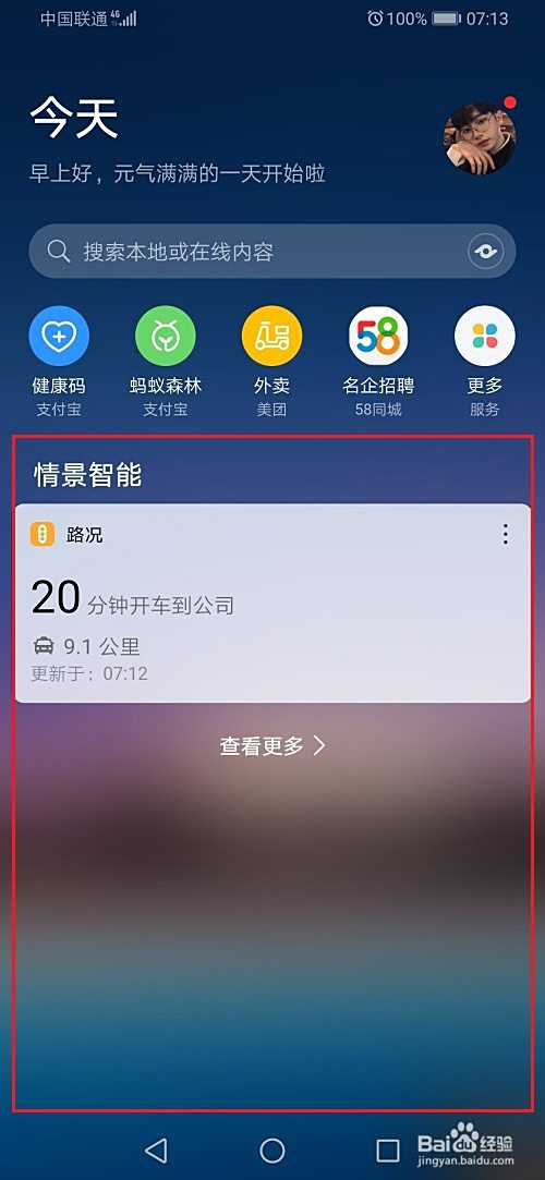 第一步打开华为手机负一屏,可以看到显示了新闻,点击右上方的头像,如下图所示: