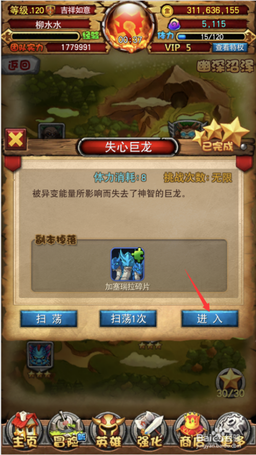 3.打开掉心巨龙副本,点击进入按钮。