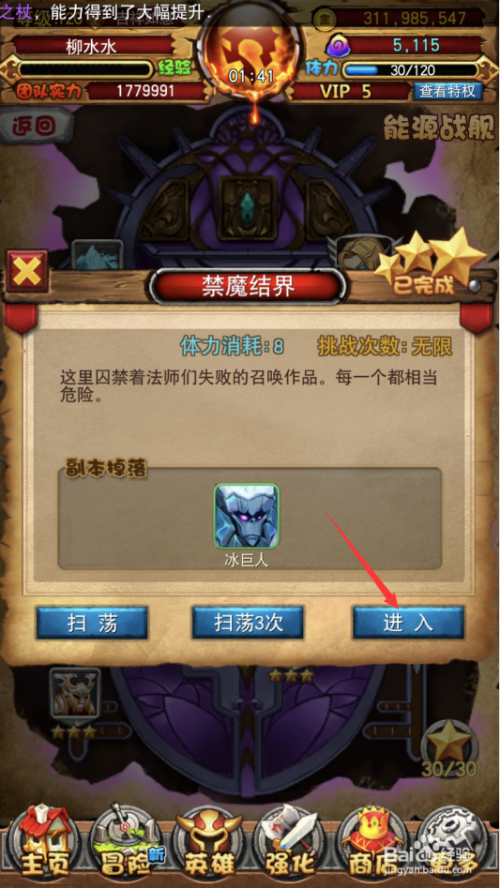 点击游戏本家儿菜单冒险,再点击子菜单副本按钮。