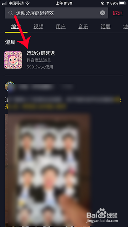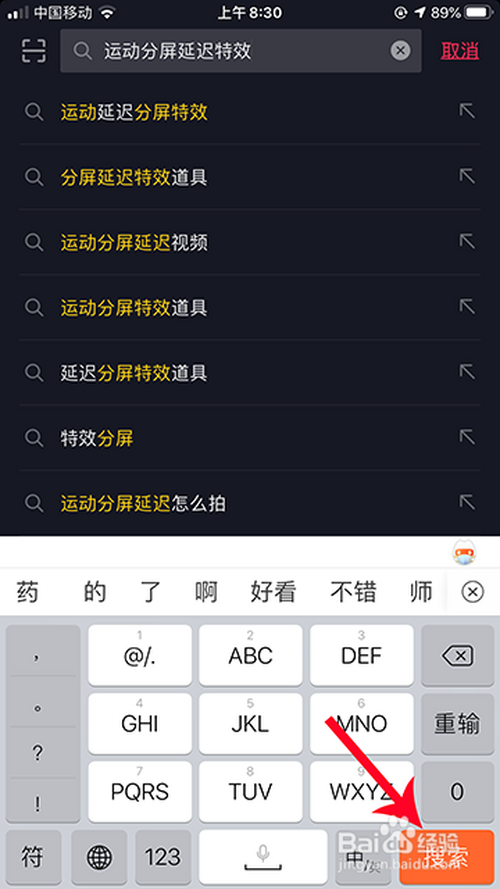 2.在搜刮框输入“活动延迟分屏特效”点击“搜刮”。