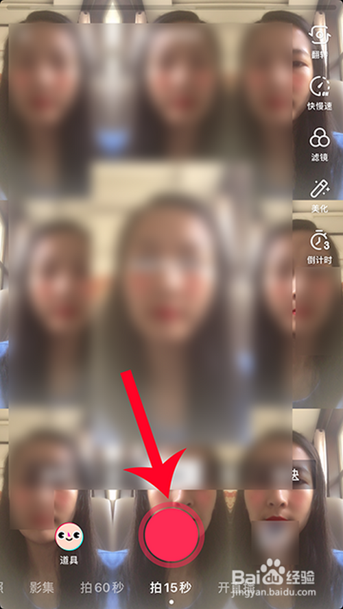 进入到拍摄界面点击拍摄按钮拍摄,拍摄完毕后,加上辅助功能点击“下一步”,起上题目“发布”即可。