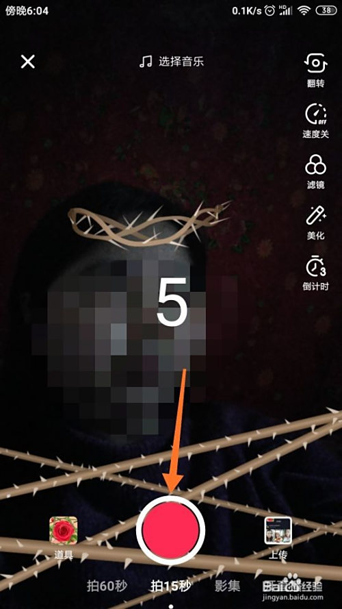 拍摄时,画面上 的人物头发和衣服上就会布满荆棘,但只要用手做出“比心”的动作,荆棘上就会开满鲜花。
