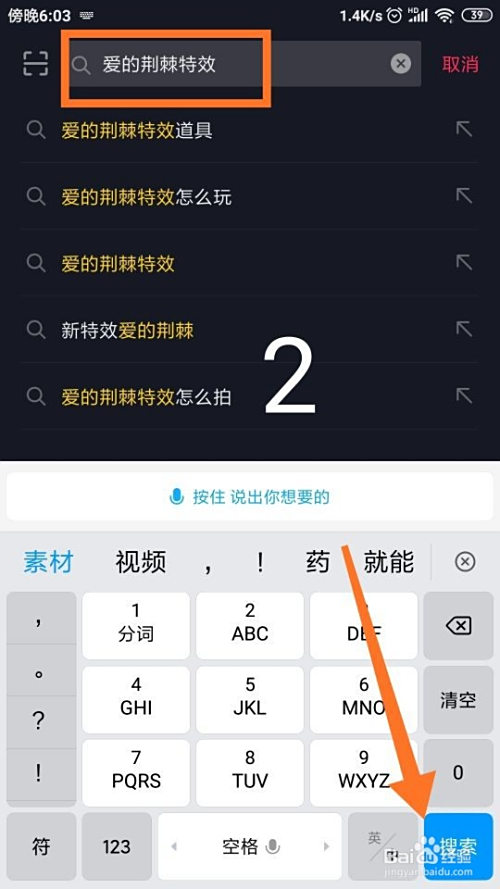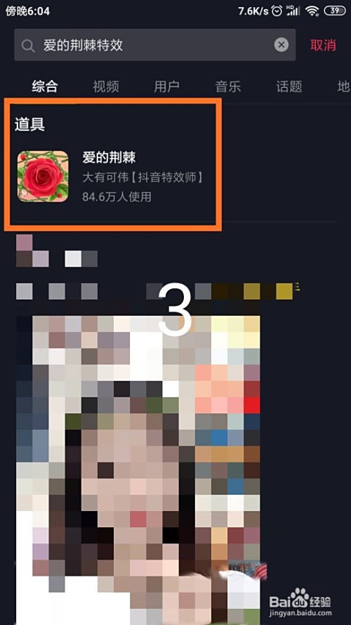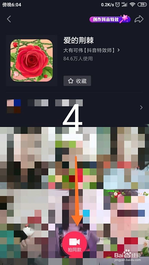 进入“爱的荆棘”特效页面后,点击“拍同条目”。