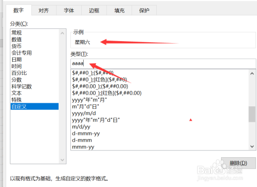 在类型中输入aaaa,上面的事例就会显示日期啦。