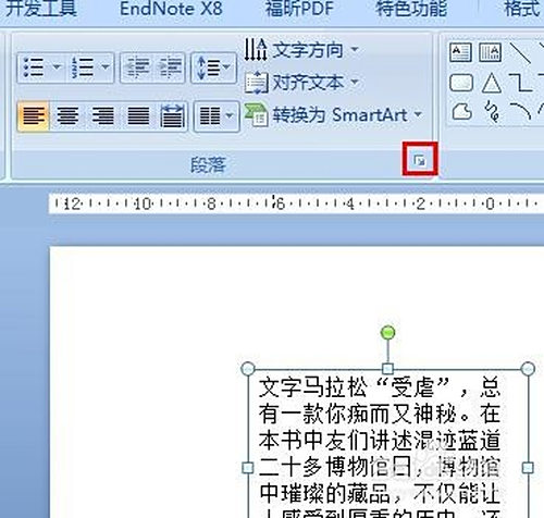 在东西栏“段落”中点击右下角箭头按钮,如图。