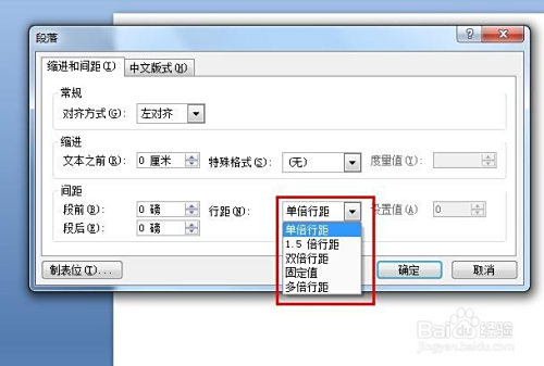 如图所示,可以快速选择1.5倍和2倍行距,也可以设定固定值行距或多倍行距。设置完当作点击确定。