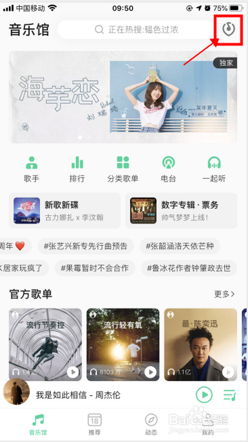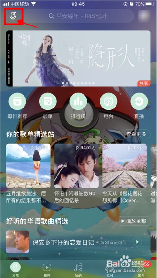 点击左上角的听歌识曲的按钮;