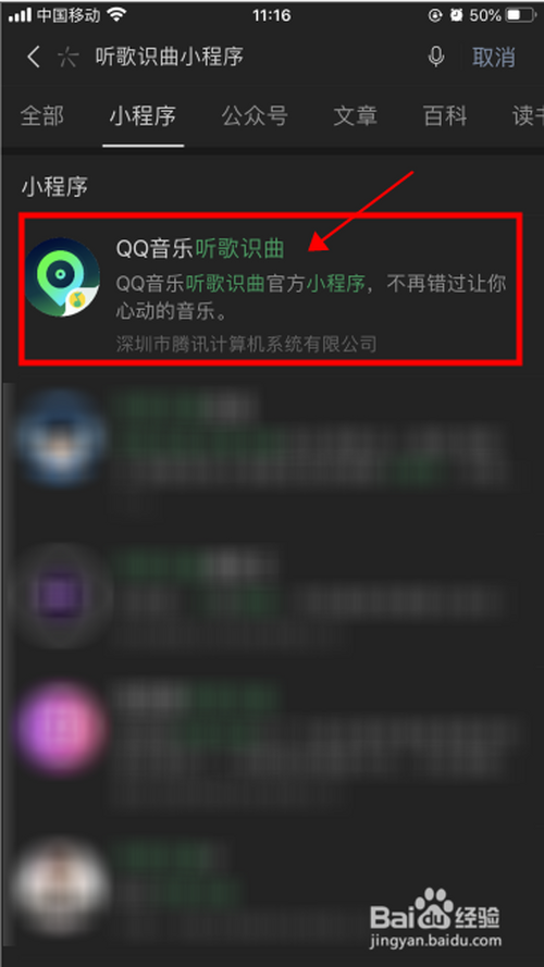 在微信中搜刮“听歌识曲”,然后在成果中选择小程序“QQ音乐听歌识曲”;