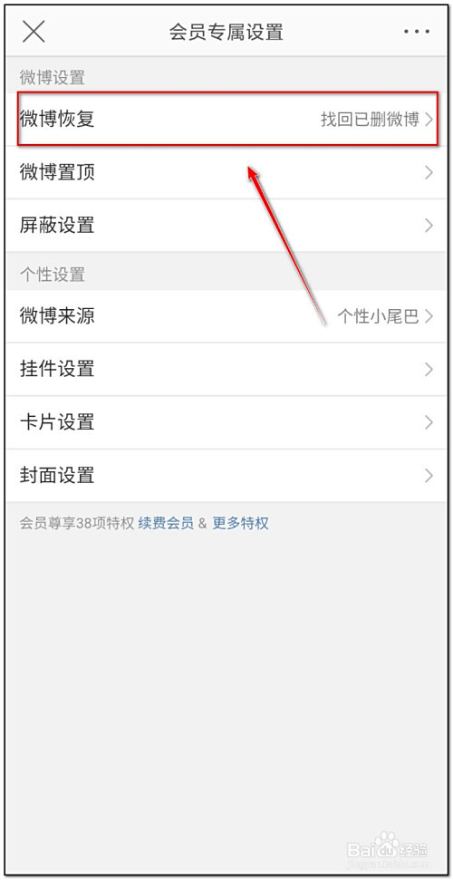 点击“微博恢复”