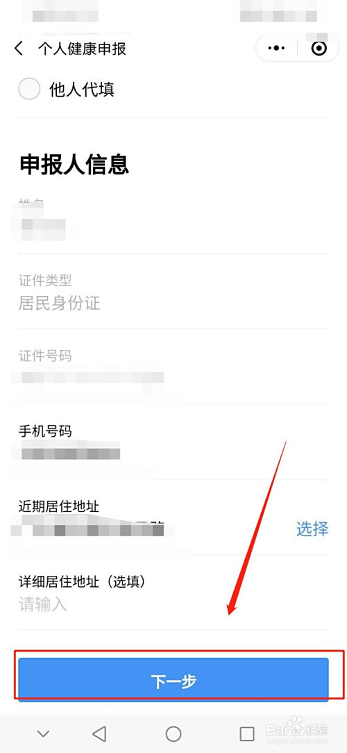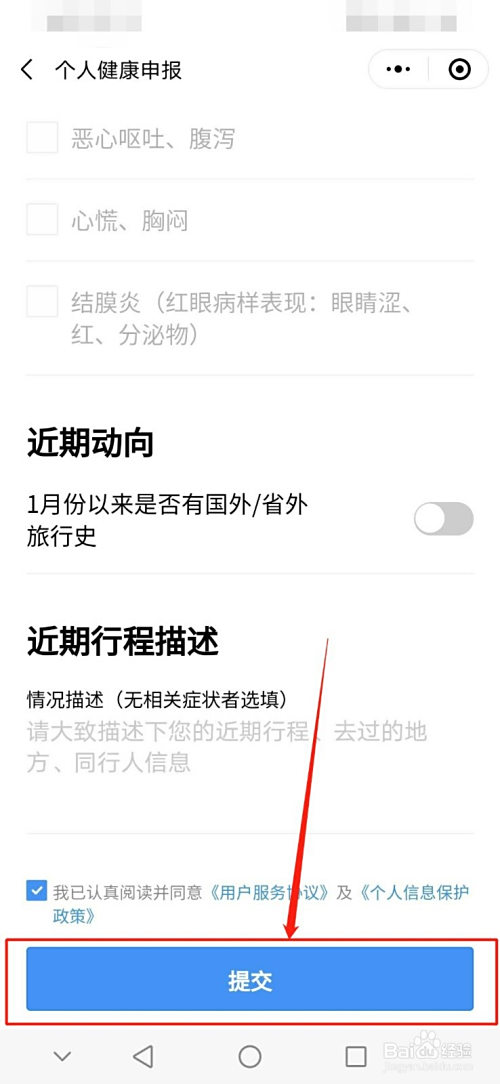 进入“健康申报”界面后,点击最后一行的“小我自查健康申报”,如图。