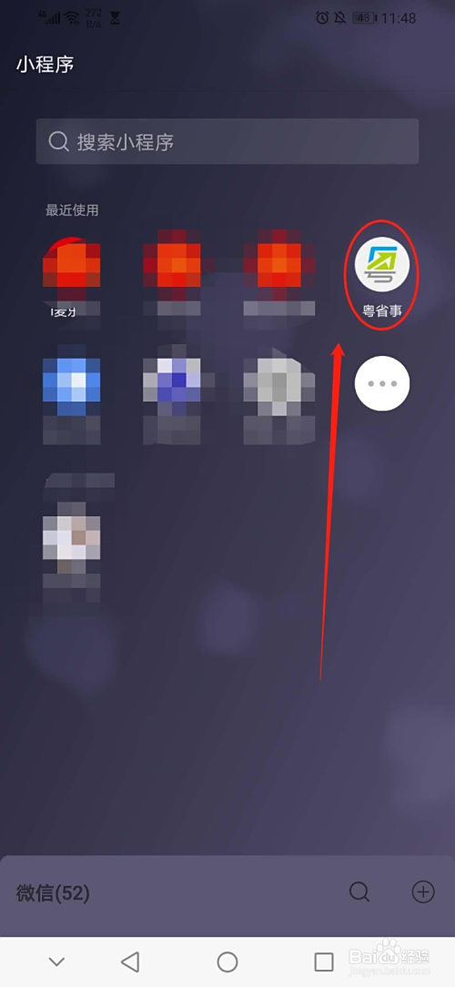 进入微信首页后,标的目的上滑脱手机屏幕。弹出小程序界面。如图。