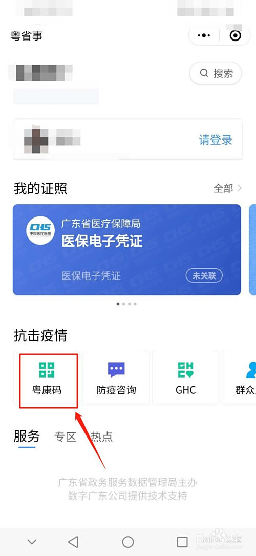 进入“粤省事”界面后,点击“粤康码”,如图。