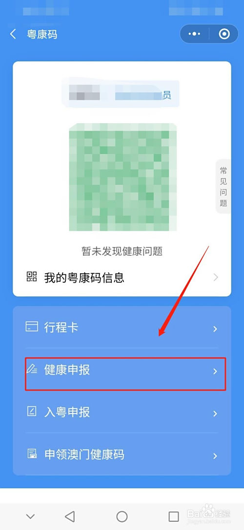 进入“粤康码”界面后,点击第二行的“健康申报”,如图。
