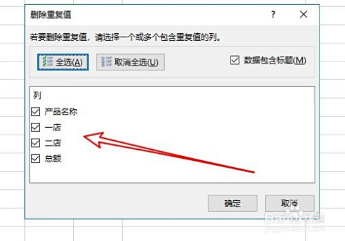 再打开它删除反复值窗口,点击勾选要参考的数据列。