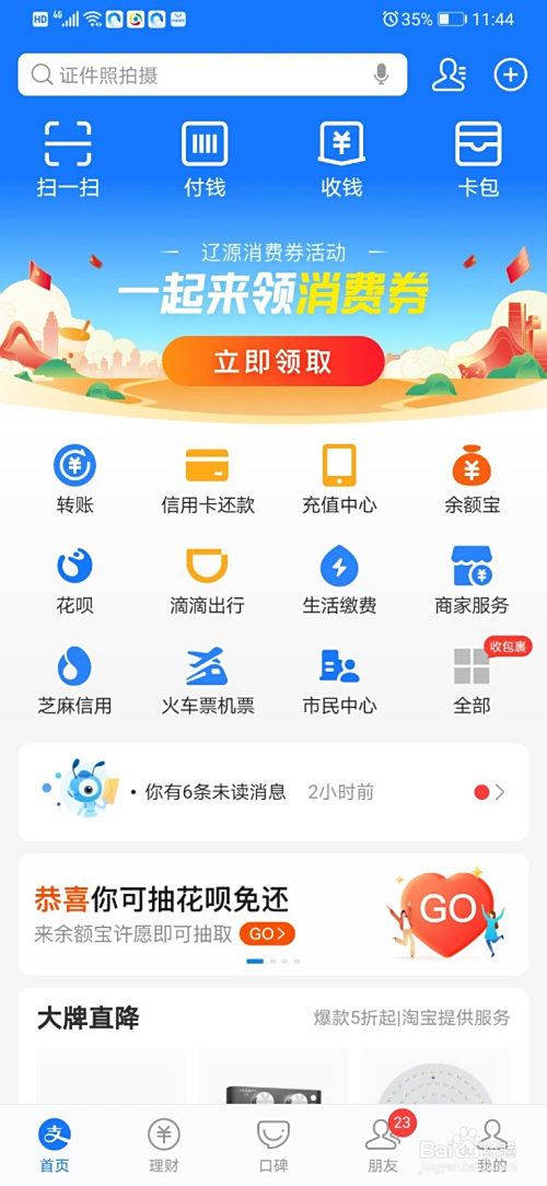 我们在进入支付宝之后,标的目的下滑动一下屏幕,中心有一个条幅,找到520剖明日的勾当。