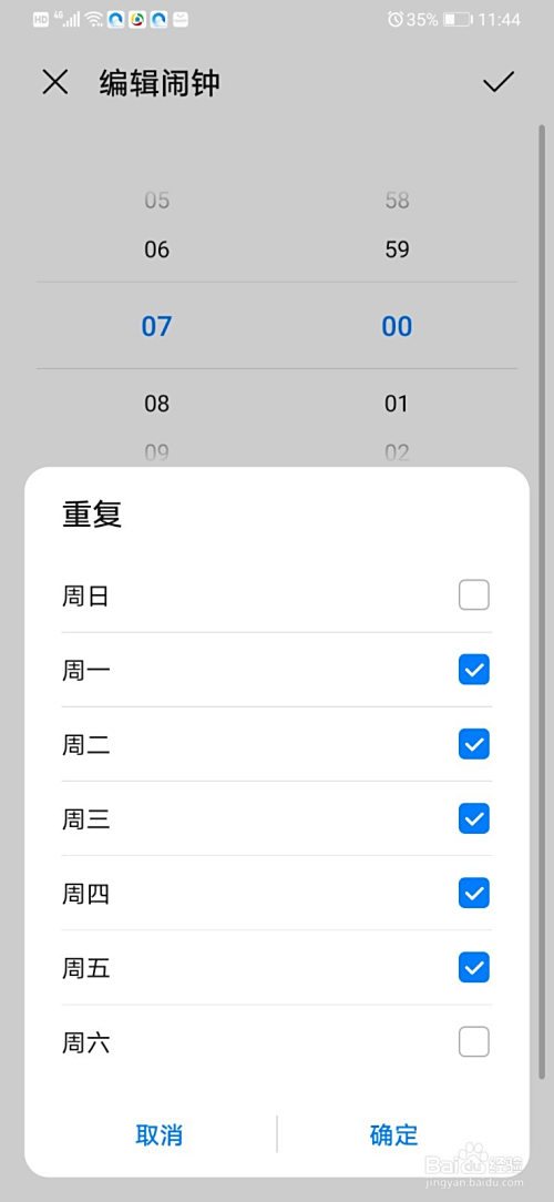 不外我们也可以手动设置,进入后,将周六和周日勾选失落。