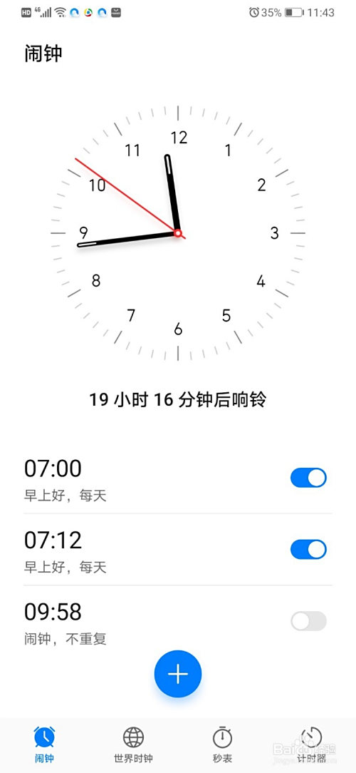 进入之后,下方可以添加闹钟,也可以对现有的进行编纂。