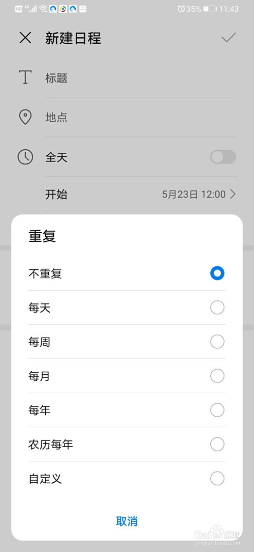 最后设定一下提醒我们时候的一个闹铃是否反复,这个就按照我们现实的需要就可以了。