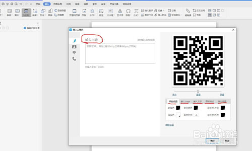 4.看到“插入二维码”对话框,可以设置参数,别离点开看一下,很简单