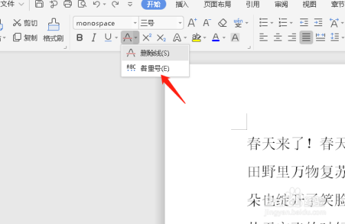 这时辰选择的文字已经加上了着重号,如图。