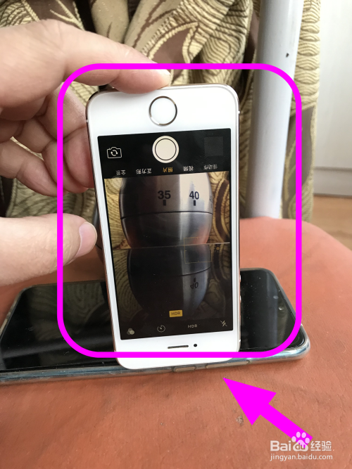 倒置第二部手机,将第二部手机【顶部】放置于倒影手机的【屏幕上方】;