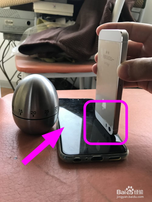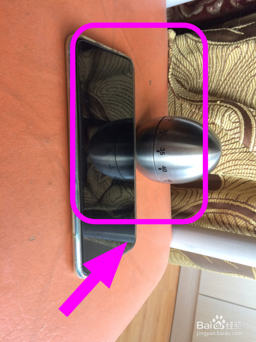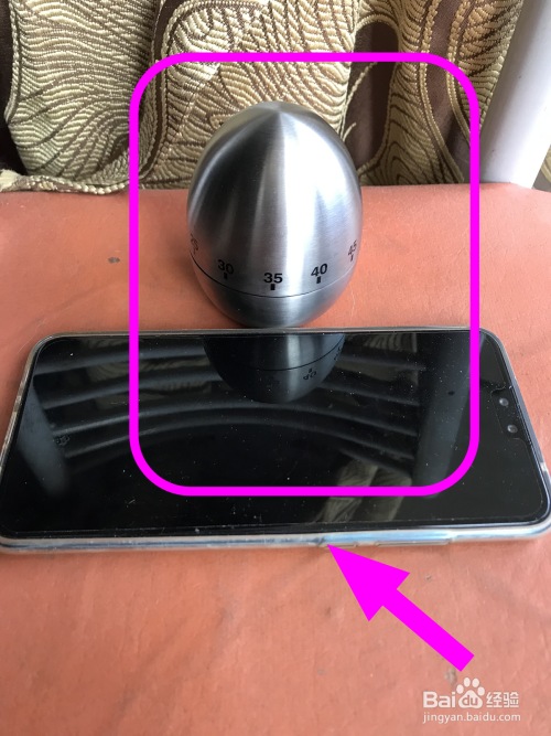 手机待机,平放,将【长边】置于物体【底部边缘】;