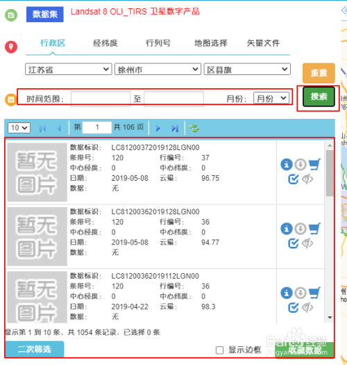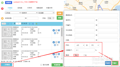 点击【二次筛选】,选择对应信息,保举选择夏日月份,云量低于0.1%,必需选择稀有据(没稀有据不克不及下载),然后点击【确定】