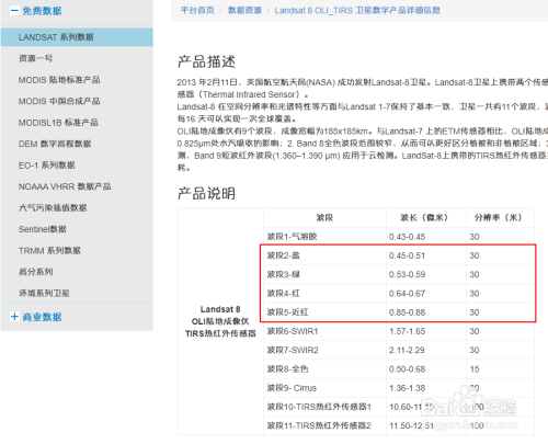 本经验需要下载LANDSAT系例数据中的Landsat8影像,需要查看Landsat8卫星的具体参数。