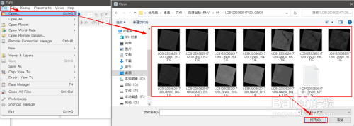 1. 点击ENVI本家儿菜单的【File】->【Open】,选择上一步解压后的数据,然后点【打开】