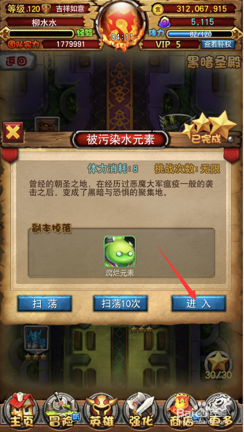 点击游戏本家儿菜单冒险,再点击子菜单副本按钮。