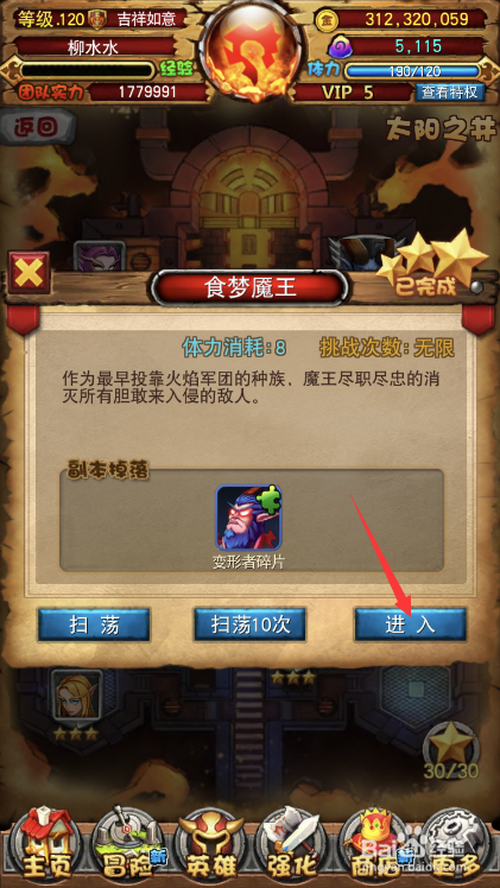 点击游戏本家儿菜单冒险,再点击子菜单副本按钮。