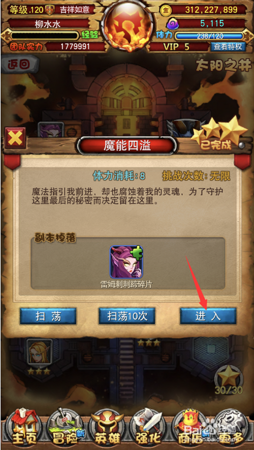 点击游戏本家儿菜单冒险,再点击子菜单副本按钮。