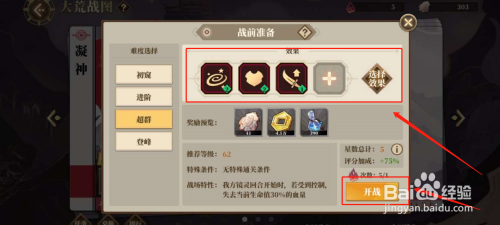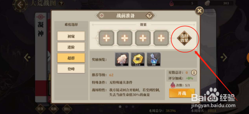 4、选择关卡后,可以在 战前筹办 界面选择上阵结果;