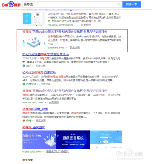 找到【微导流-苹果ios企业签名|TF签名|内测分发托管|免费APP封装打包】,点击进入