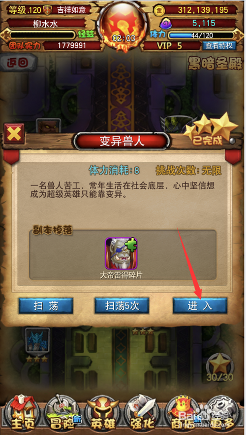 点击游戏本家儿菜单冒险,再点击子菜单副本按钮。