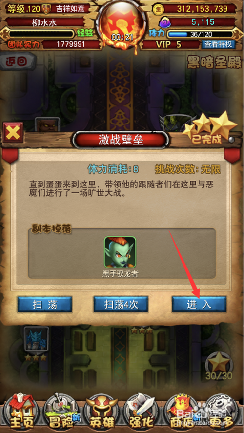 点击游戏本家儿菜单冒险,再点击子菜单副本按钮。