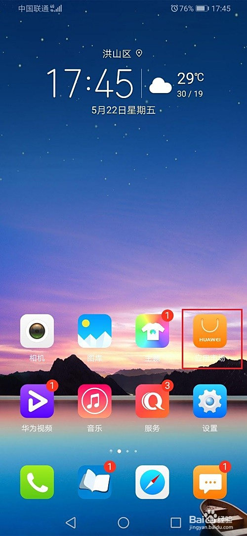 第一步打开华为手机,点击桌面的应用市场,如下图所示: