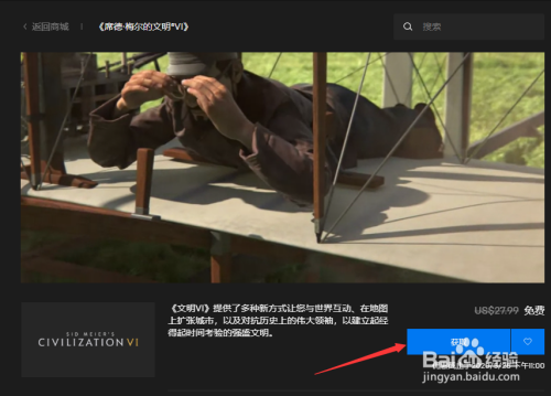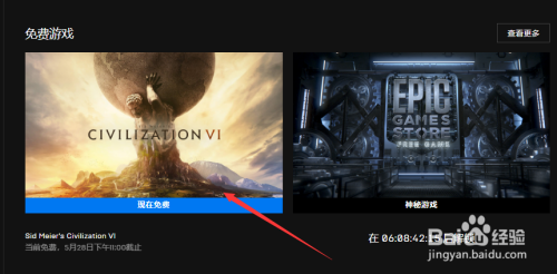 将商城页面标的目的下拉,找到“免费游戏”。我们选择第一个游戏《Sid Meier's Civilization VI》(《文明VI》),免费时候为5月21日下战书11点~5月28日下战书11点。