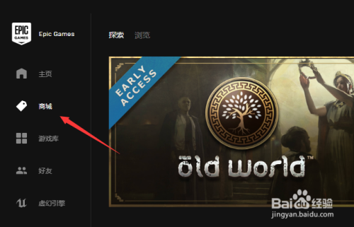 打开Epic Games,选择左侧的“商城”选项。
