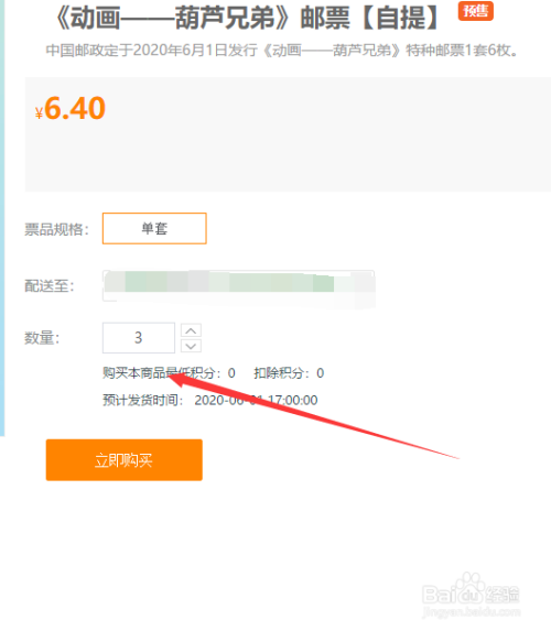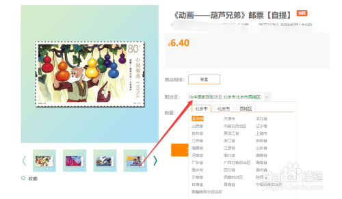 第五:在数目栏选择想要采办的【葫芦娃邮票数目】。
