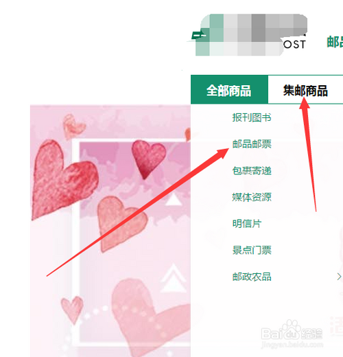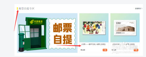 第二:点击【集邮商品】然后选择【邮品邮票】选项。