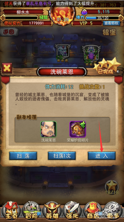 点击游戏本家儿菜单冒险,再点击子菜单副本按钮。