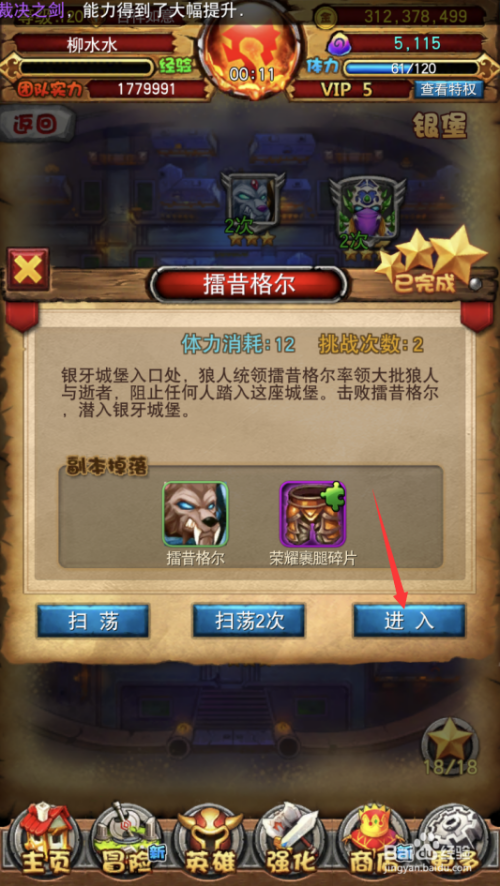 点击游戏本家儿菜单冒险,再点击子菜单副本按钮。