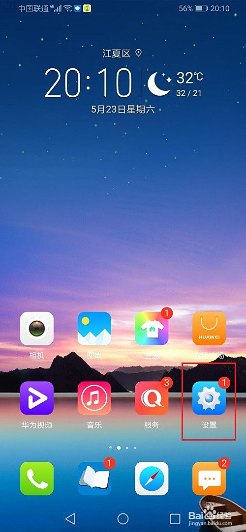第一步打开华为手机,点击桌面的设置,如下图所示: