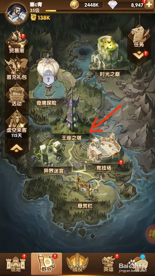 然后选择“王座之塔”