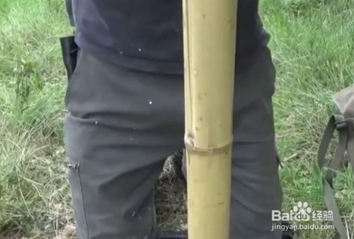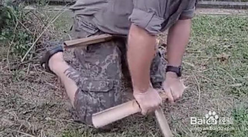 然后将竹子的后背割开一道口儿,将竹子作为容器来放置火绒作为引火物,火绒若是没有怎么办?一样利用竹子,用刀在竹子后背刮下来就是很好的引火物。