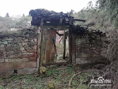 庙的院墙高约两米,用石头砌当作,墙头杂草丛生。院墙的中部有一对开的庙门,门上的瓦顶破败不胜,十数块片土瓦在上面重重叠叠,为那仅剩的半扇破木门遮风挡雨。