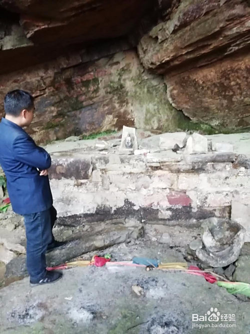石崖分为一大一小两处,相距不远。岩屋庙依托石崖,也是一大一小两部门建筑。大的庙体长二十多米,高约三米,崖内往里约有七八米深。石崖外部用白粉墙封堵到崖顶,仅在崖顶与墙的连系部留下一道窄窄的裂缝,用来通风、采光和排烟。最左侧看来是石崖的最深处,里面黑咕咙咚的,冷气逼人,惊蛰刚过,恰是虫蛇出洞的时节,不敢深切。紧邻石洞的是用一米多高的石头墙分隔当作三间房,没有房顶,估量本来就没有房顶。中心是佛堂,后部有一高两尺的石平台,平台上有小小佛像,高约尺许,在那边享受着人们敬奉的喷鼻火。估量上方的通风口排烟结果不是太好,小雕像已经变了颜色,分不清是供奉的哪路仙人了!佛堂下面有一道人工凿出的小石沟,估量是洒扫排污之用,石沟外是一个大石洼,从石洼的外形看来,应该是人工取石留下的。雷打庙的墙体和新庙水井砌石用料来历于此无疑!右边是一间大房间,应该是大厅了。小石崖何处的举措措施已经荡然无存,建华说那是厨房和焚喷鼻烧纸的处所。我想也是这样,在大石崖何处的庙里大量地焚喷鼻烧纸,不通风不透气的,必定不可。仅佛像前那点喷鼻火就把菩萨雕像熏当作黑木头,僧侣的衣被还不知是咋样子呢!